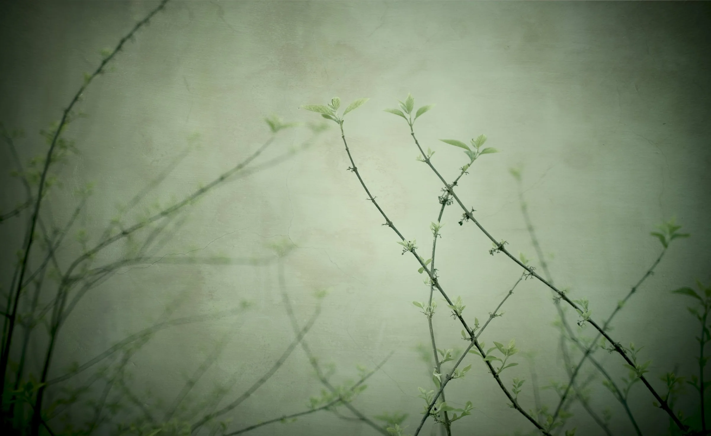 Green branches with small leaves against a textured light green background. View fullsize