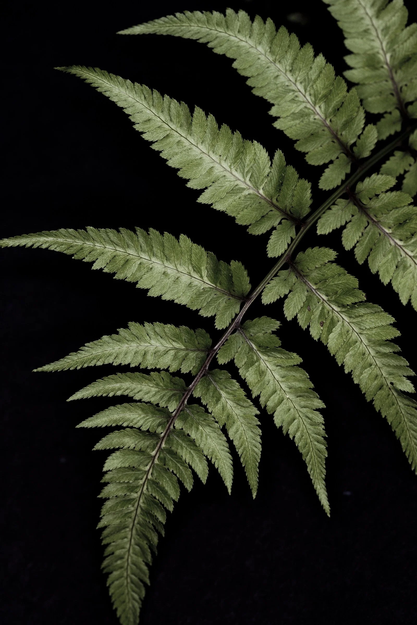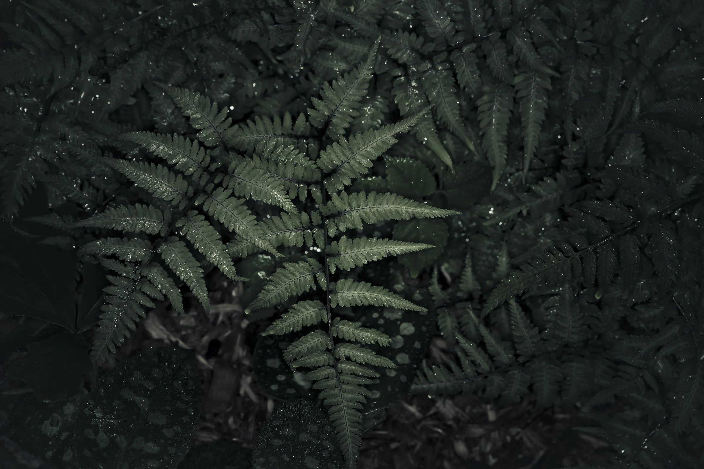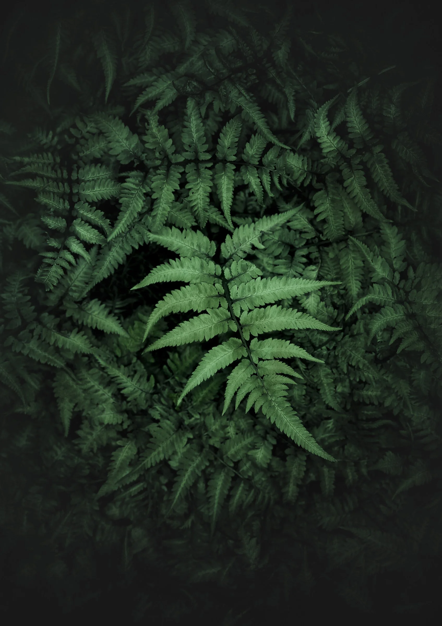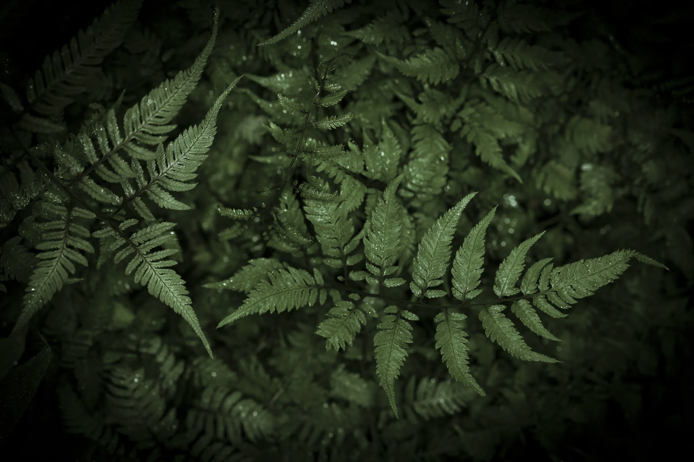 Close-up of green fern leaves against a dark background. View fullsize