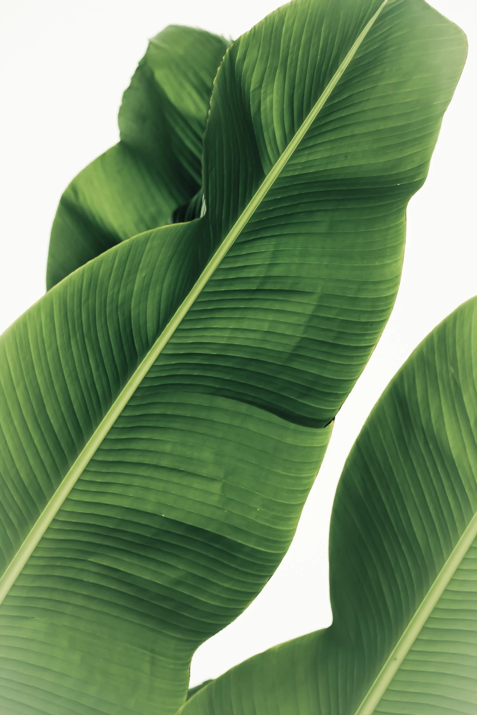 Close-up of large green banana leaves with textured surface. View fullsize