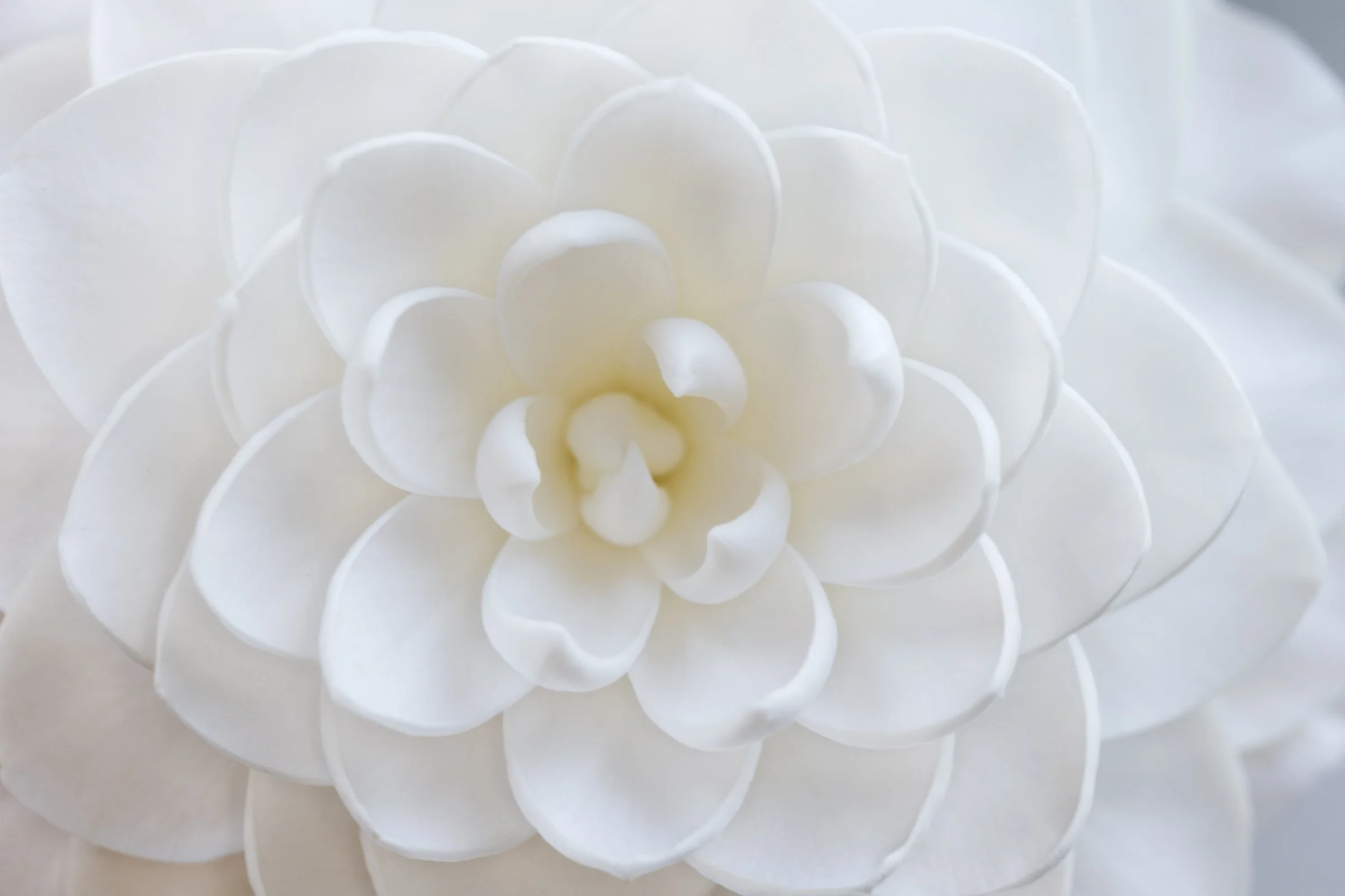 Close-up of a white camellia flower with layered petals