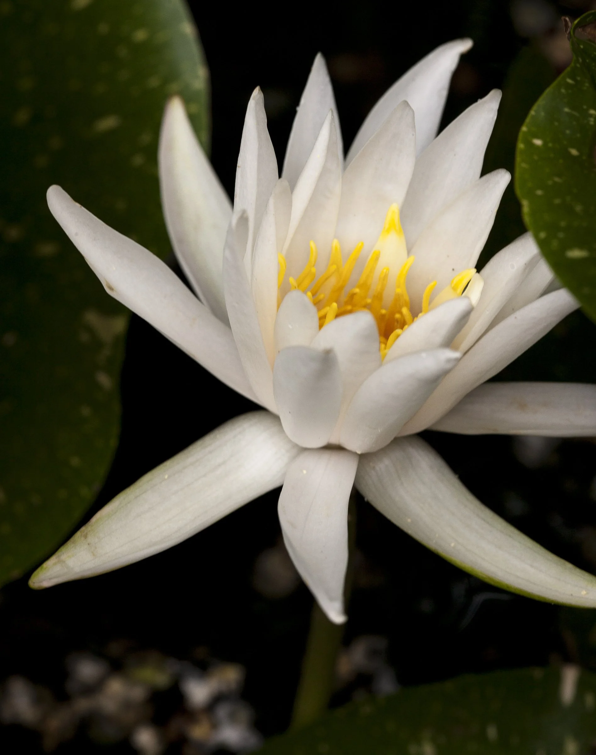 White water lily with green leaves