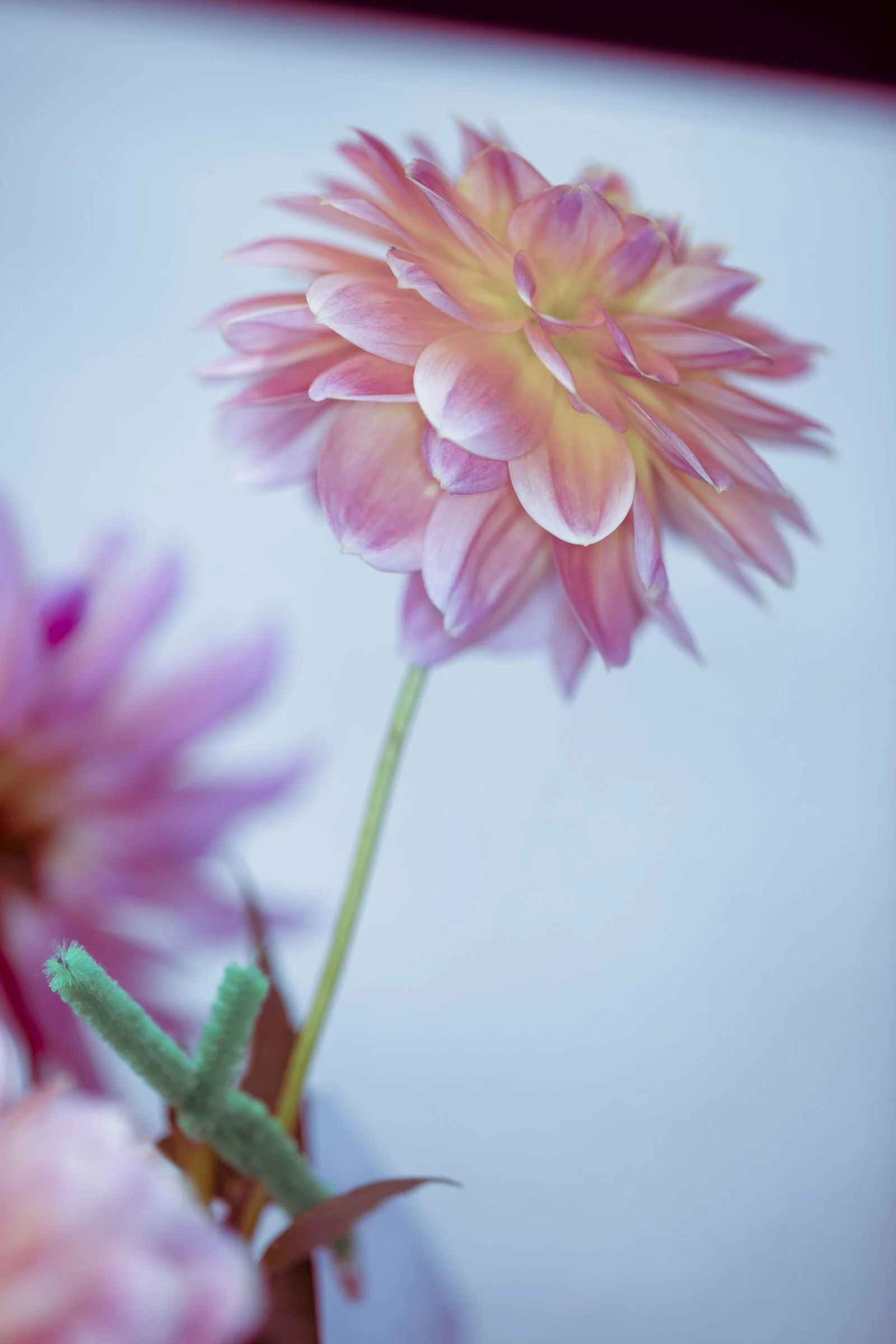 Close-up of a pink dahlia flower with a blurred background. View fullsize