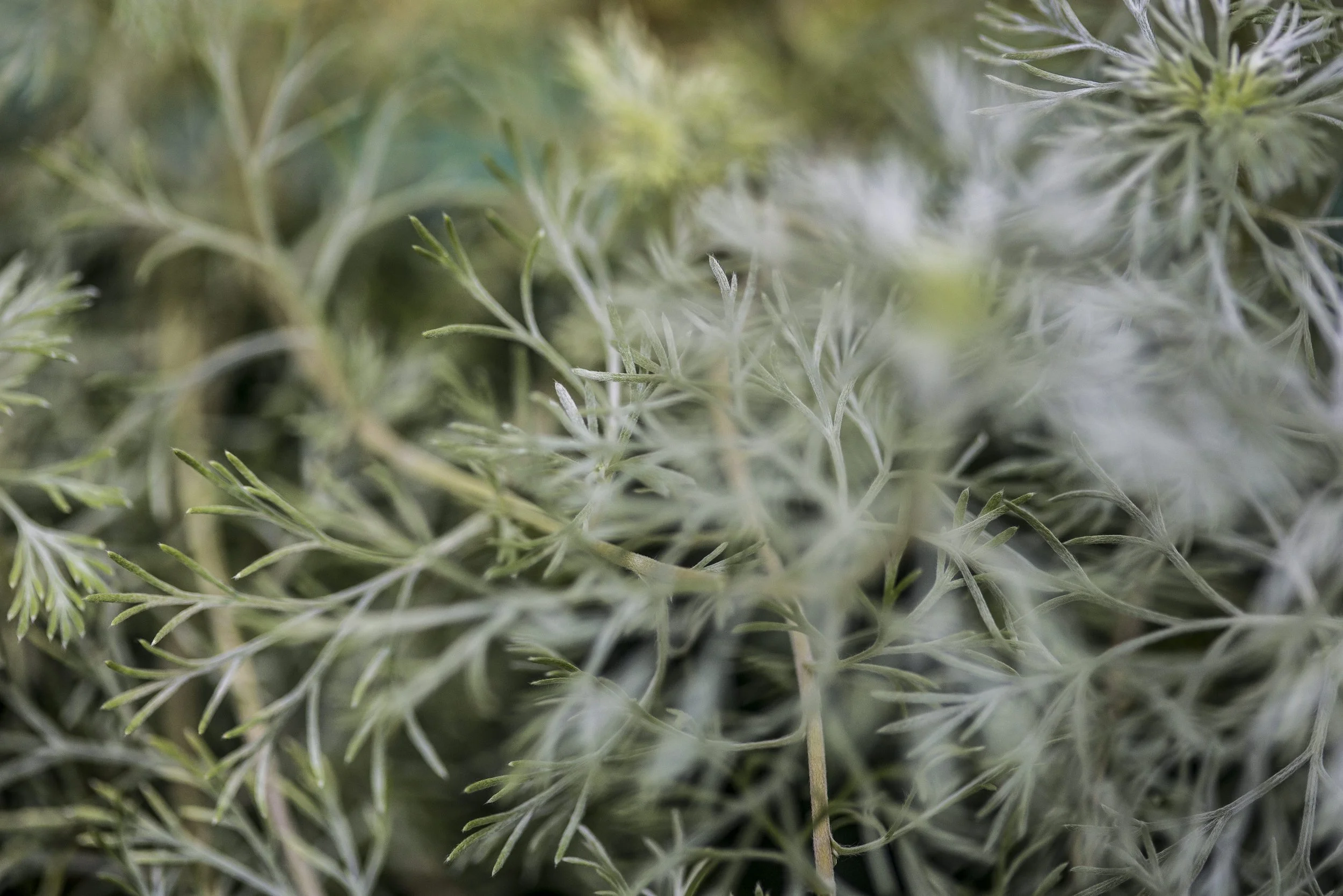 Close-up of feathery, light green dill leaves