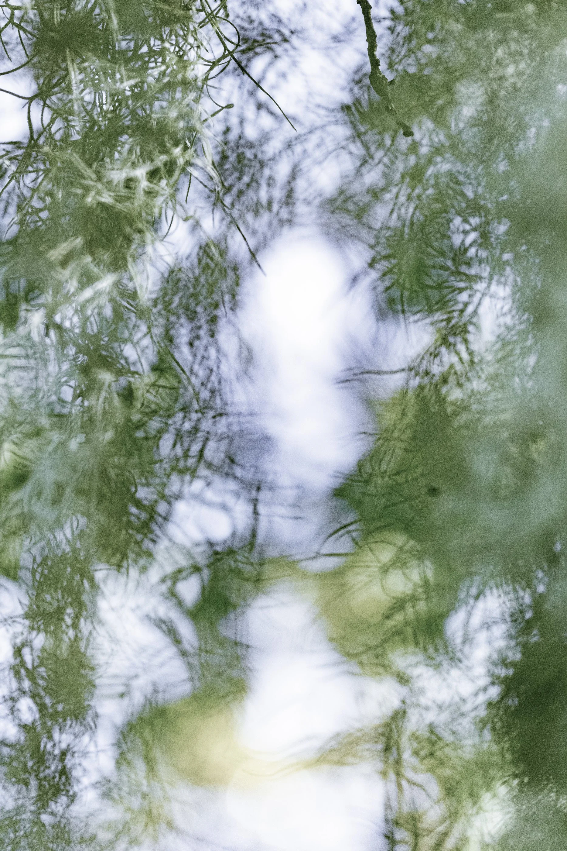 Abstract blurred image of green foliage and branches.