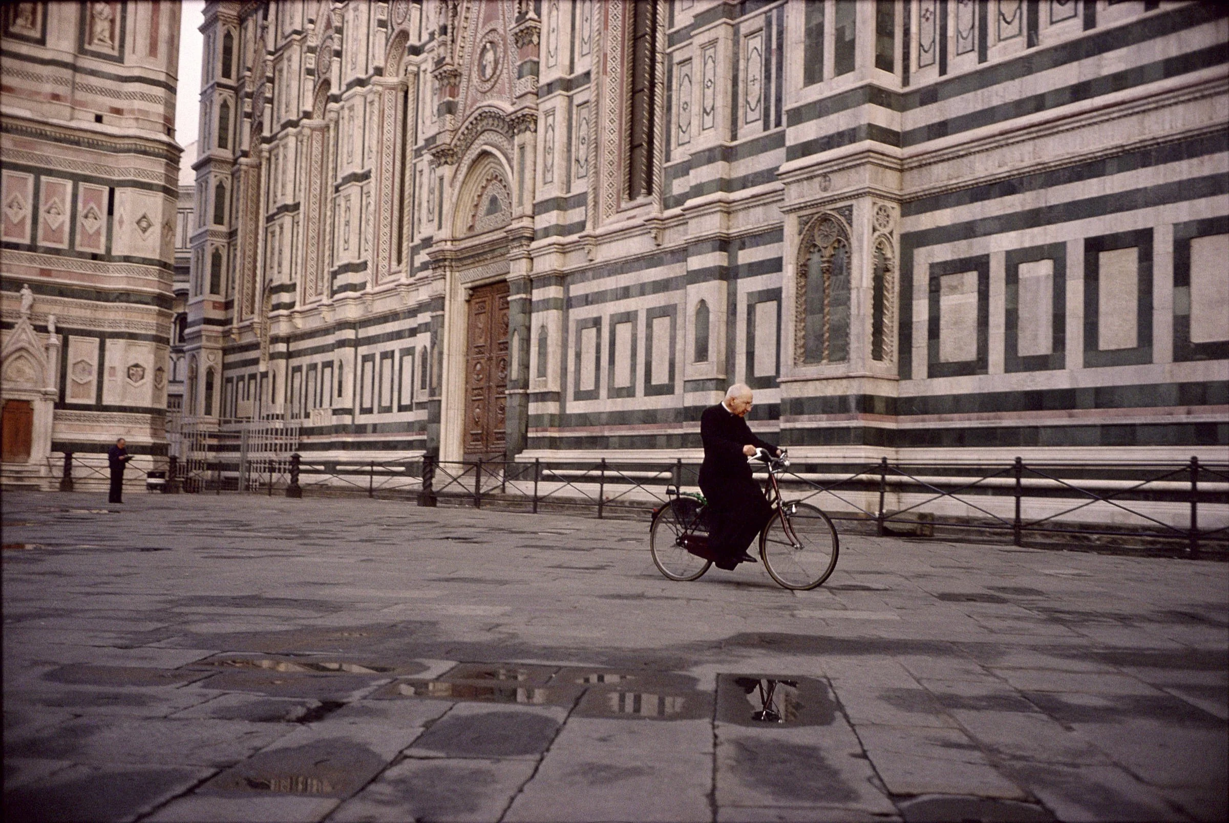 Florence cathedral with newspaper kiosk in foreground, Italy.